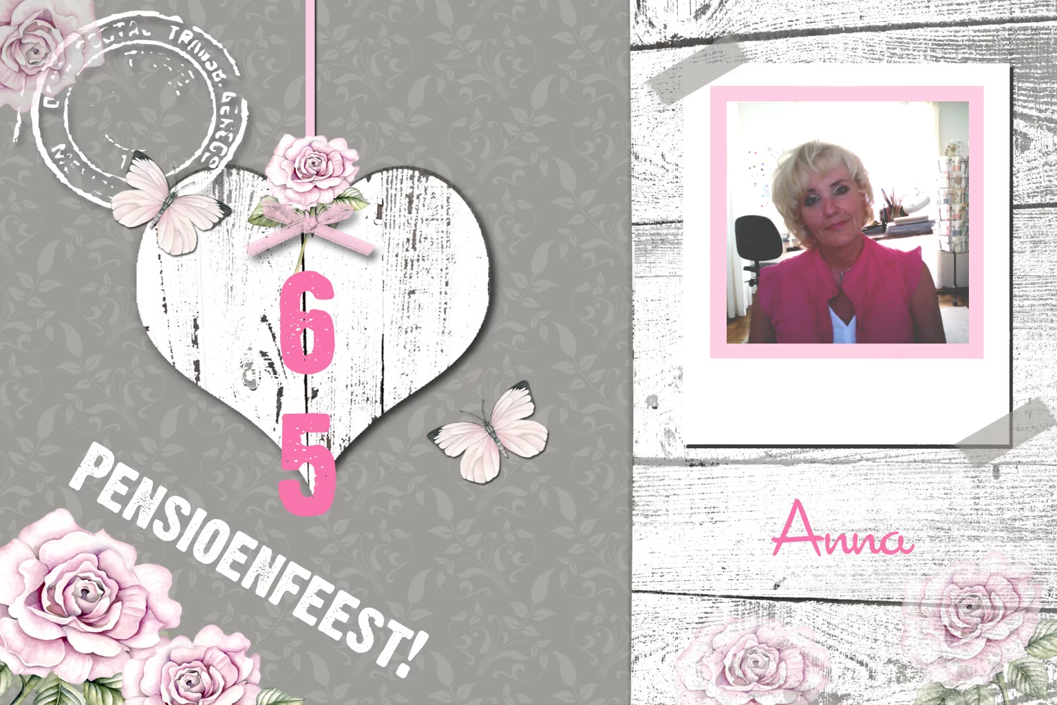 Vier een persioensfeest en stuur deze mooie kaart naar je gasten. Op het houten hart kan je je leeftijd plaatsen of een leuke tekst.