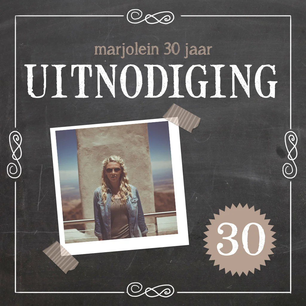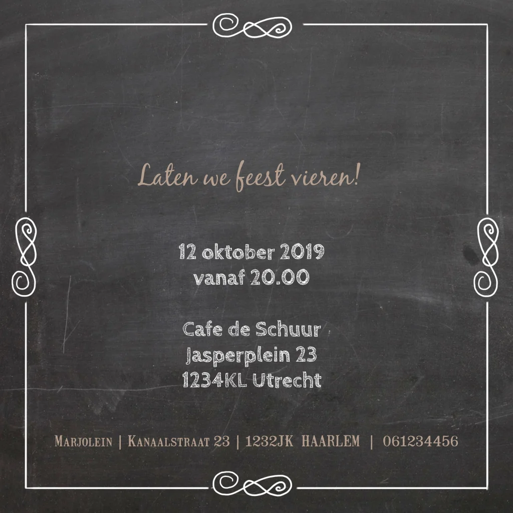 Hippe uitnodiging op krijtbord voor een verjaardag. Verander zelf de tekst en de foto!