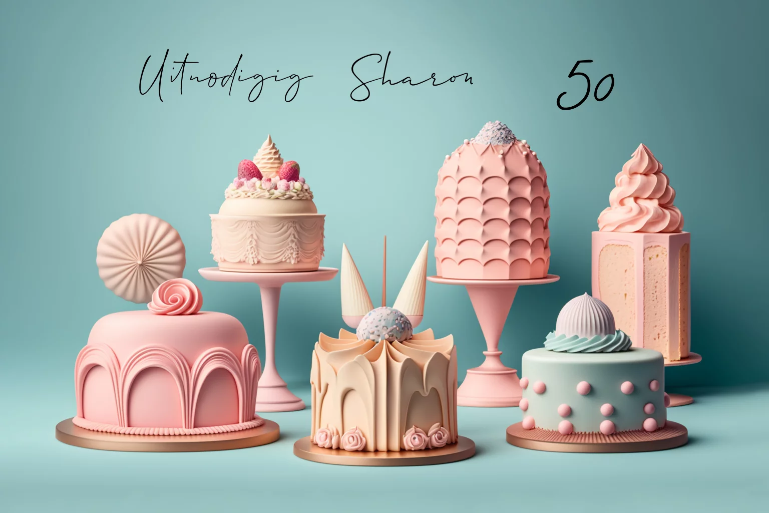 Lekkere uitnodiging met veel prachtige pastelkleurige taartjes. Een lust voor het oog. En een superleuke uitnodiging voor je feest, verjaardag of High Tea.