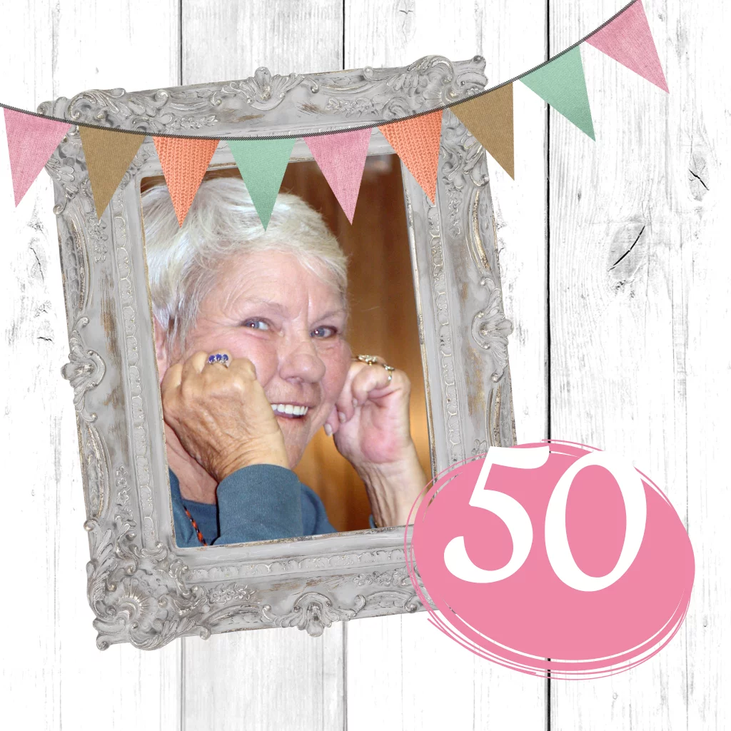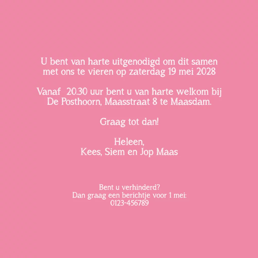 Verstuur deze vrolijke kaart om jouw gasten uit te nodigen voor je verjaardag. De eigen foto in de leuke lijst maakt de kaart extra persoonlijk.