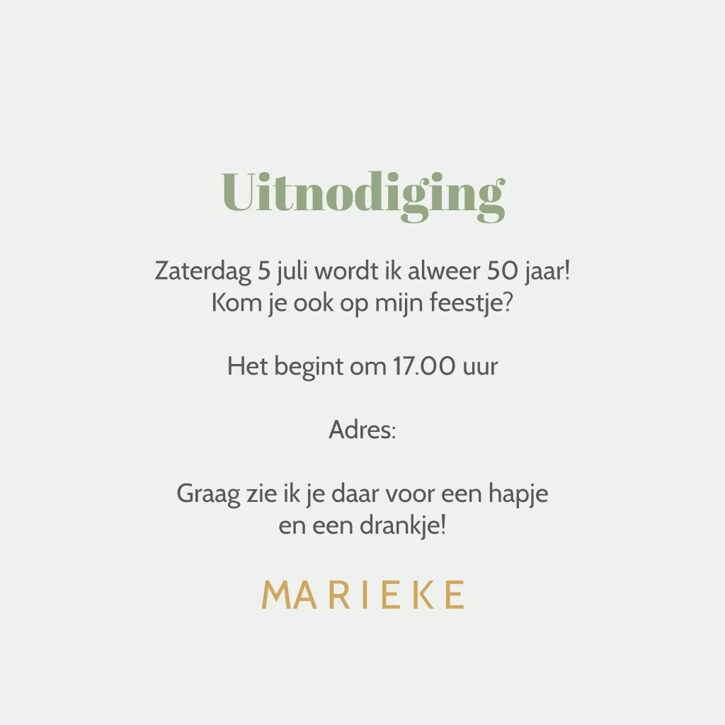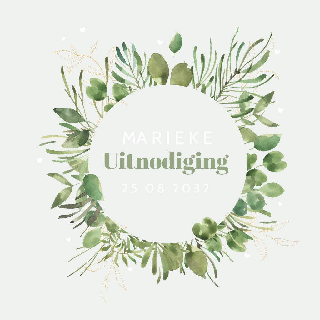 Uitnodiging verjaardag met krans takjes en goudfolie